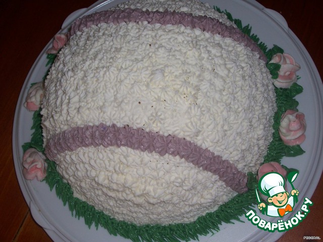 Потом взбить сливки для украшения и украсить мячик, можно как футбольный или какой нравится.