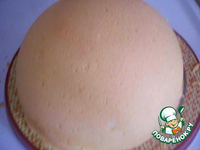 Итак: печём бисквит, выливаем его в форму и накрываем другой, чтобы, когда испечётся, в середине была выемка, чтобы залить крем.