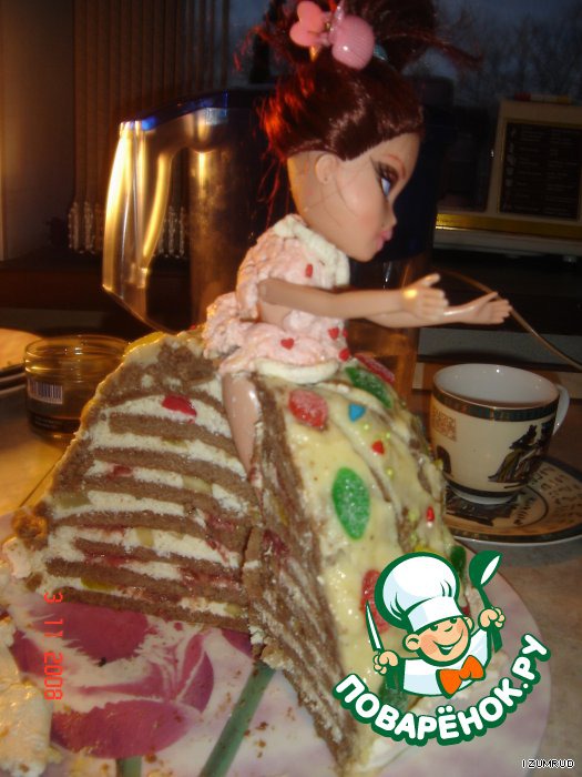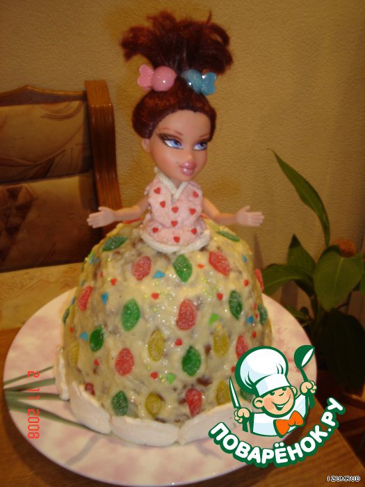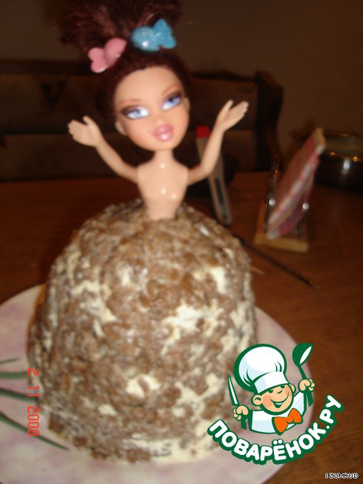 В середину торта вставляем (конечно же помытую) куклу BRATS