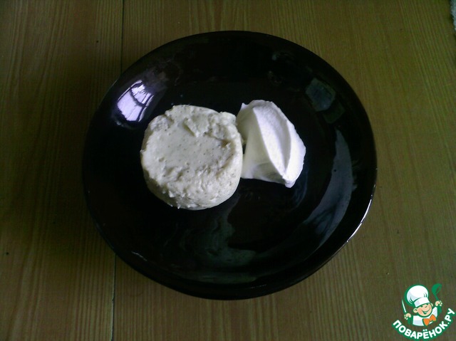 | Рецепт придумала сама. Не приторный, приятный на вкус творожный десерт. Готовится быстро и просто, не требует никакой кухонной техники, кроме плиты. В качестве водяной бани использована большая кастрюля, наполненная водой таким образом, чтобы порционная посуда, предназначенная для десерта, в этой воде не всплывала. |