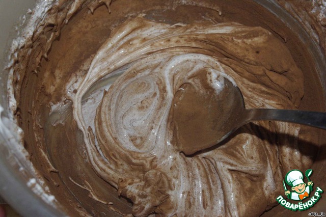 В оставшуюся массу добавляем 1 столовую ложку какао. Хорошо перемешиваем.