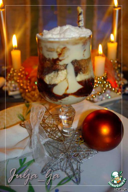 Крем, белые меренги, потом опять виноград и крем, шоколадные меренги и крем.. Насколько хватит места в бокале.