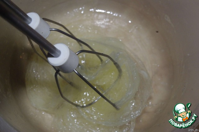 Для этого, яйца разделим на белки и желтки. Белки взобьём в стойкую пену, в конце добавим сахар, постепенно, не прекращая взбивать.