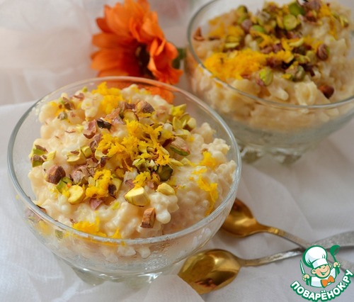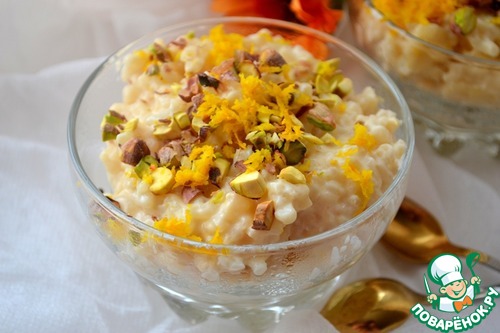 Посыпаем пудинг, посыпав его фисташками и тертой апельсиновой цедрой.