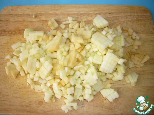 Яблоко очистить, удалить семена. Нарезать мелкими кубиками.