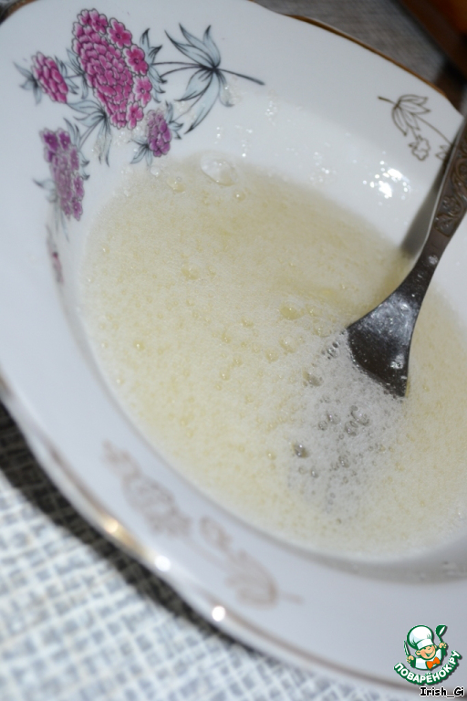 Взбить белок и добавить ст. ложку сахара. Тщательно перемешать.