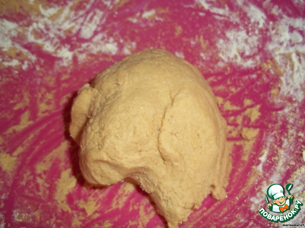Отрываем кусочек, раскатываем 3-4 мм толщиной.