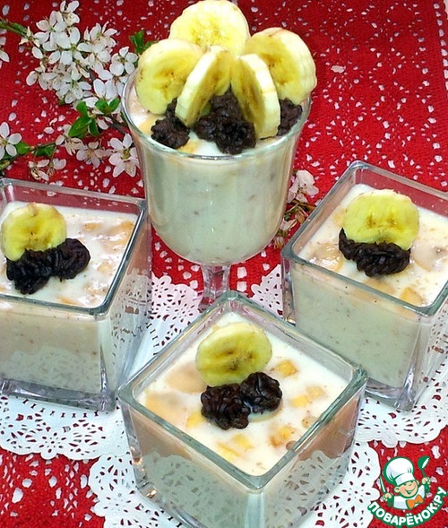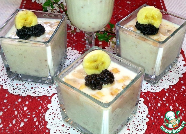 Кусочки банана, шоколад и миндальные орешки хорошо дополнили вкусовые качества желе.