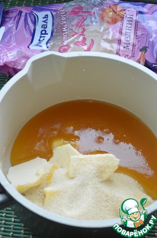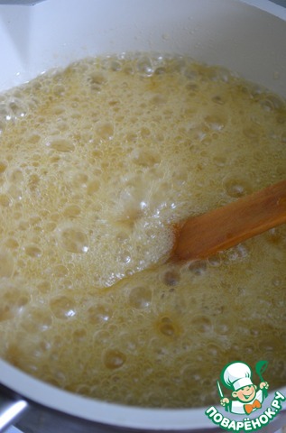 Поставить посуду на очень маленький огонь и разогреть до полного растворения сахара. Отставить и дать слегка остыть 5 мин.