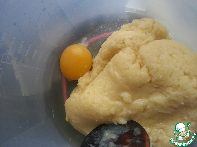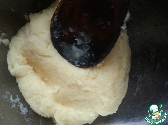 Потом по одной кладём яйца и хорошенко перемешаем до однородности. У днас должно получиться липкое к рукам тесто.