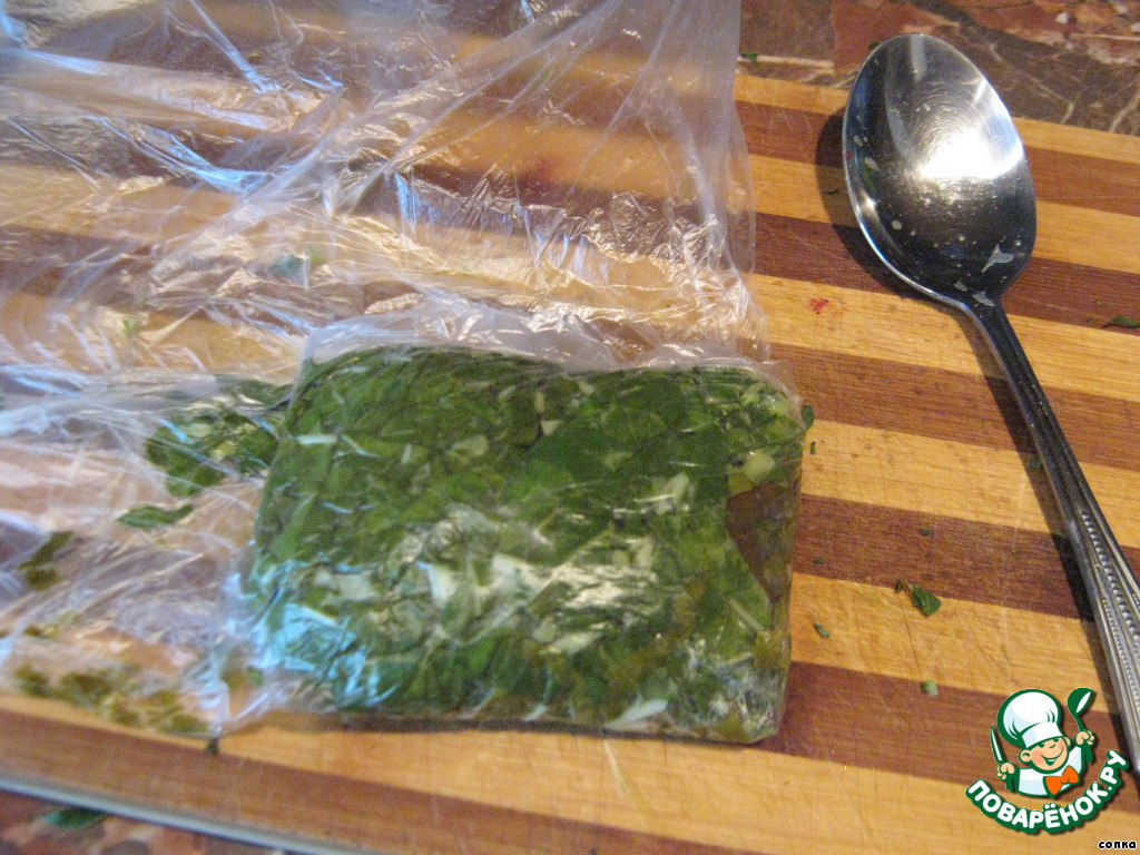 | Интересный и быстрый способ заморозки-заготовки для зеленых щей. Экономит место в холодильнике. |