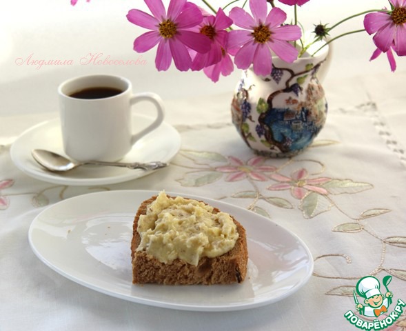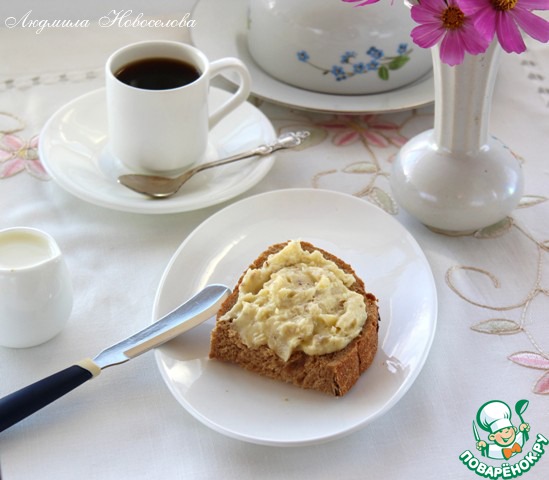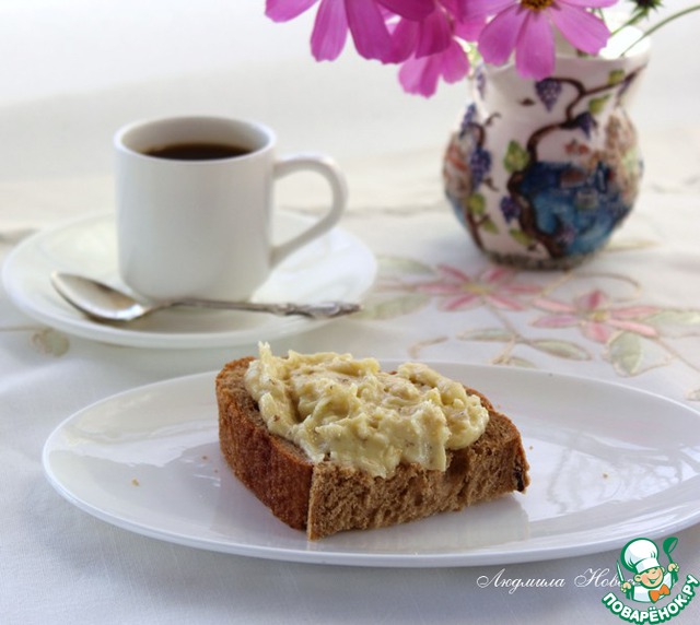 На мягкий, свежий кусочек хлеба намазываем яблочное масло