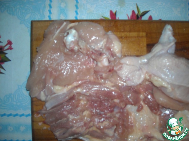 Берем курицу. Желательно свежую (я считаю что повторная заморозка мяса ухудшает его вкус). Моем её, чистим от оставшихся перьев.