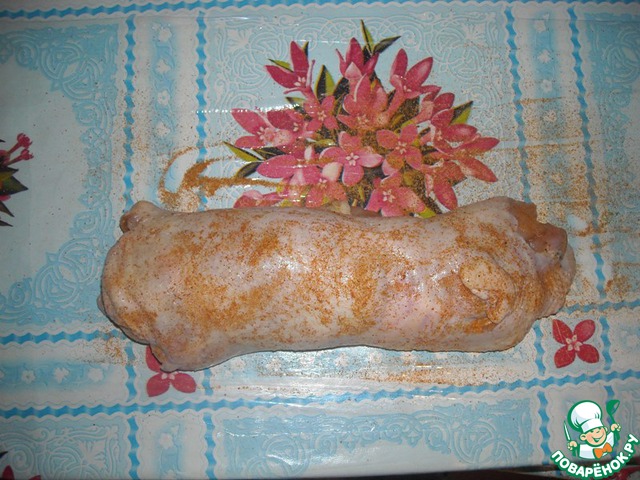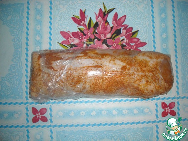 Можно перемотать нитками, жгутиками, заколоть зубочистками, завернуть в специальную сетку и т.д. в зависимости от того как вы будете его готовить. Так как я убираю на хранение то просто плотно замотала в пищевую пленку и убрала в морозилку.