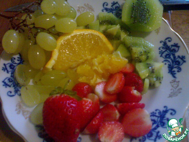 Помыть все фрукты, нарезать на маленькие кусочки.