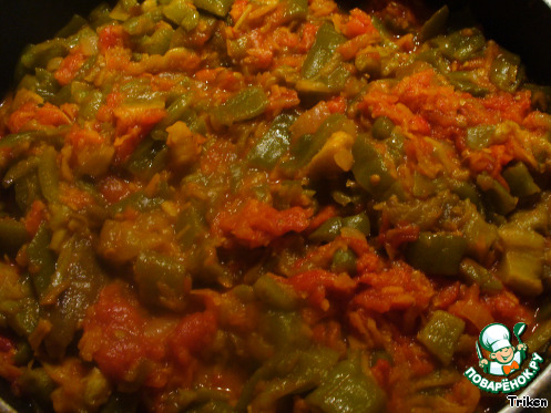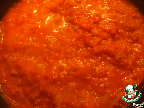 Помидоры с помощью шумовки выловите из образовавшегося сока и положите в сковороду к луку. Хорошо, если она будет глубокая. Тушите на среднем огне час, при необходимости понемногу подливая жидкость, натекшую из помидор.