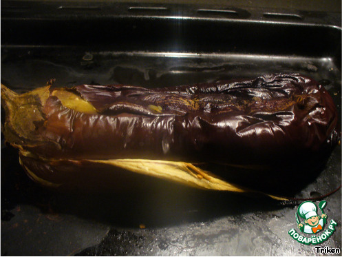 После готовности перцев поместите в духовку баклажан и запекайте его 30 -40 минут. Не бойтесь того, каким он станет.