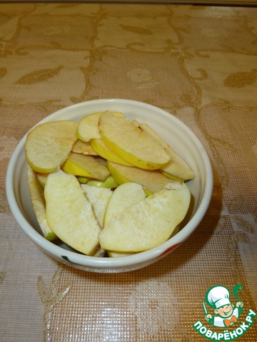 Теперь укладываем ломтики айвы в банку, каждый слой пересыпая сахаром (примерно по 1-1.5 ч. л.)