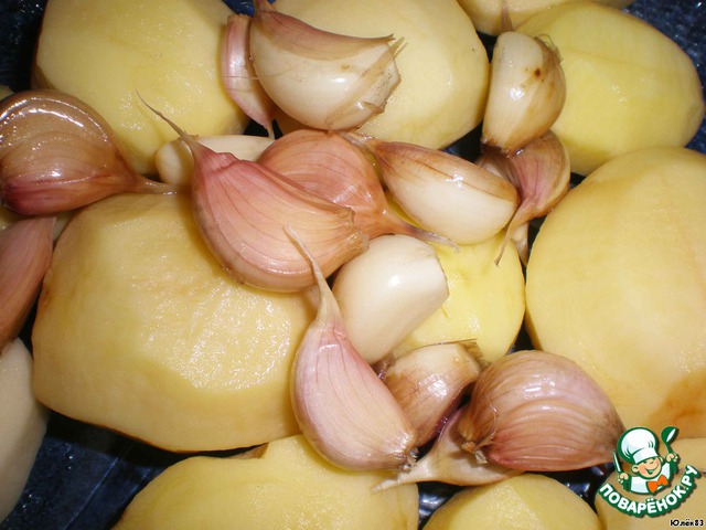 Чеснок чистим от верхней шелухи. Можно разобрать на зубчики, можно просто разломать на 2-3 части.