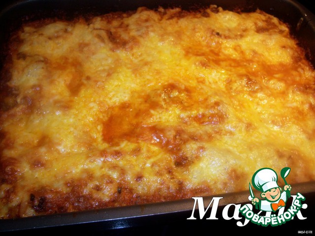 | Предлагаю вам безумно вкусный рецепт! Немного похоже на лазанью, а так как мой муженeк еe дико обожает, то и от этого блюда пришeл в восторг. Короче, описывать долго, лучше попробуйте! Получается ОЧЕНЬ вкусно! |
