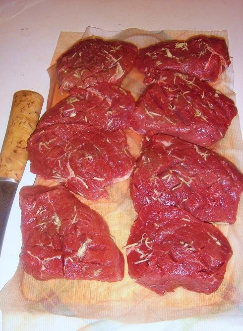 Теперь главная "изюминка": на каждом куске с обоих сторон острым ножом делаем "решётку" из продольных надрезов.
