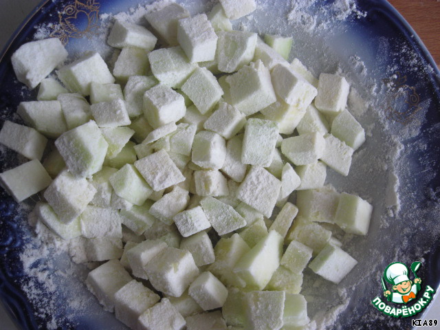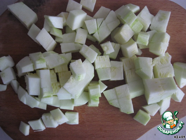 Очистить от кожицы кабачки. Нарезать кубиками.