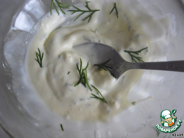 При желании можно быстренько приготовить соус: 1-2 ст. л. сметаны + измельченная зелень + немного чеснока.
