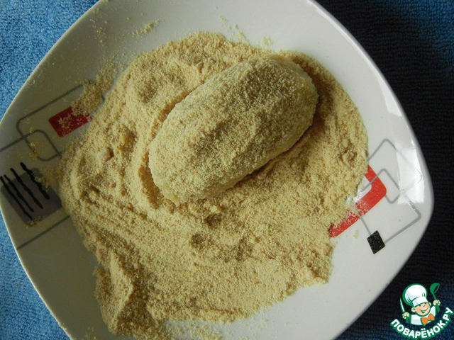 Обваливаем наши котлетки в сухарях и обжариваем со всех сторон до румяной корочки.