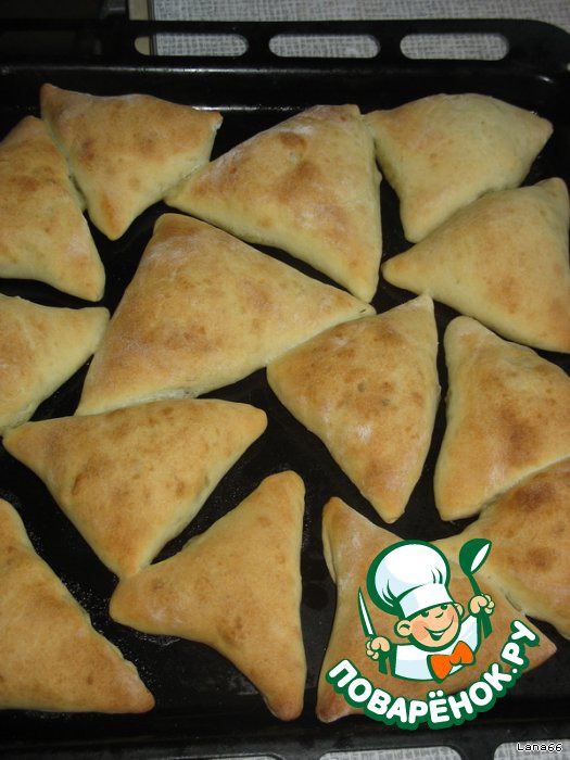 На смазанный маслом лист выкладываем нашу самсу швом вниз. Отправляем печься в разогретую до 230*С духовку на 20-25 минут.