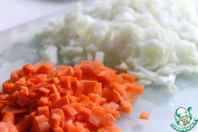 Теперь берем глубокую сковороду (+немного растительного масла и сливочное масло) и обжариваем в ней морковь и лук минутки 3 на сильном огне.