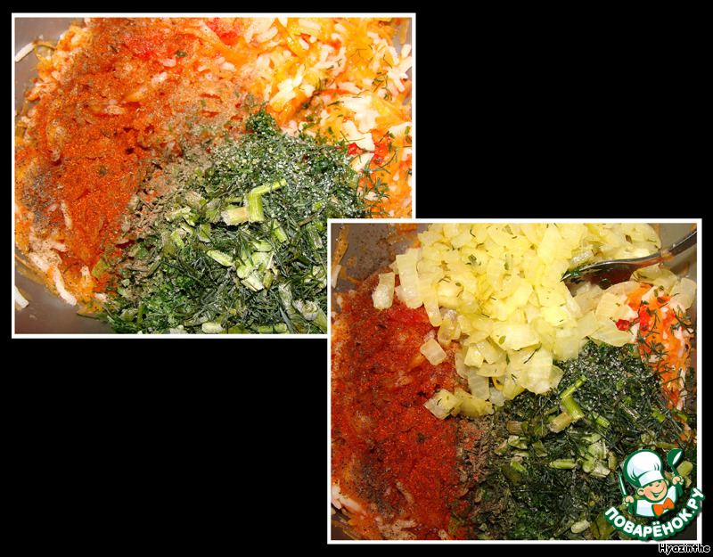 Болгарский перец мелко нарезать или натереть на крупной терке (как это сделала я).