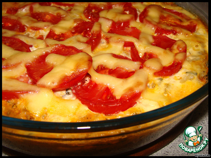 затем увеличиваем температуру до 225*С и запекаем еще 10 минут до подрумянивания верха (время и температура запекания индивидуальны, ориентируйтесь на свою духовку).