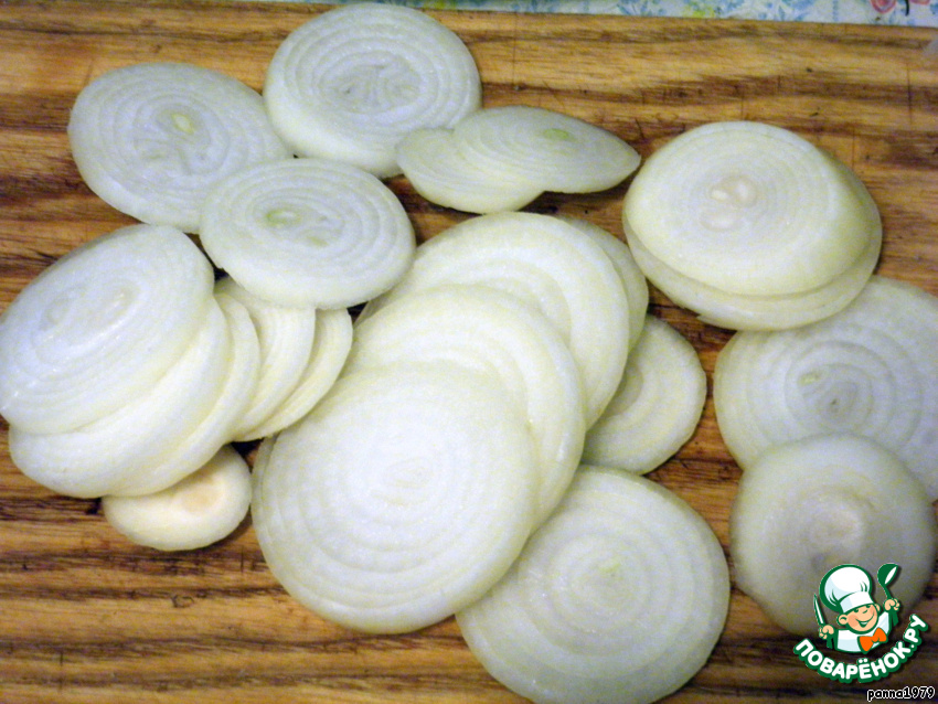 Лук очистить и нарезать тонкими кольцами.