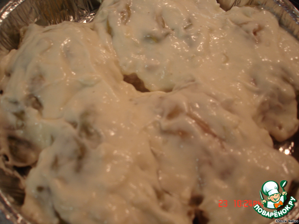 укладываем в форму с маслом и поливаем оставшимся соусом