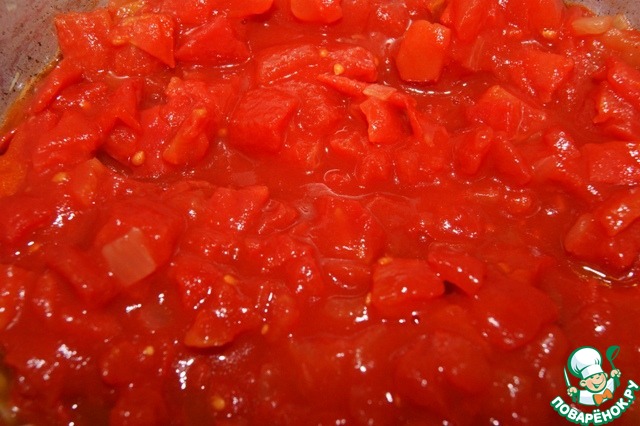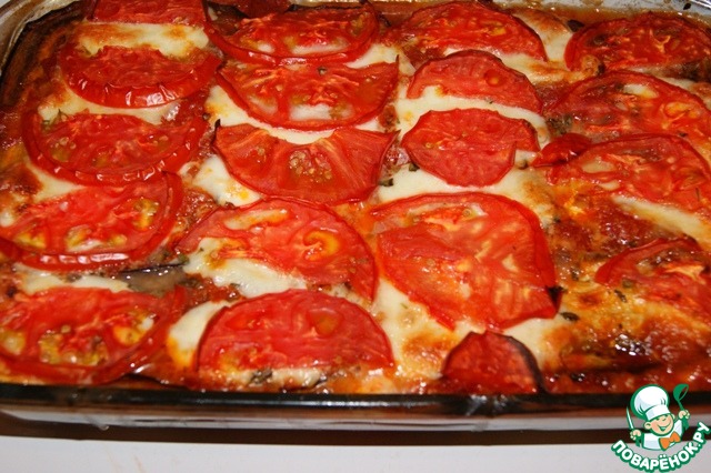 Поместить баклажаны на небольшой слой соуса из помидоров.