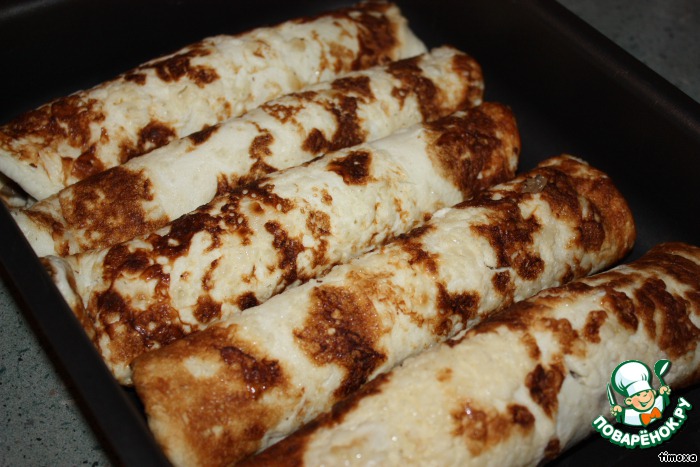 Свернуть блинчики рулетиками.