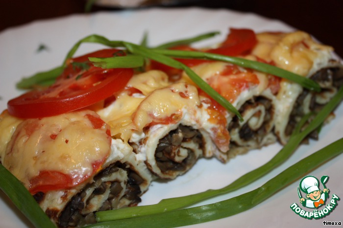 На каждый блинчик выложить грибную начинку.