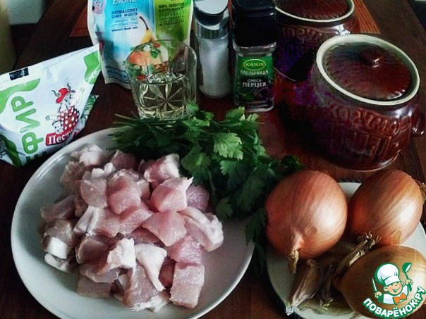| Блюда, приготовленные в горшочках, обычно никого не оставляют равнодушными. Свинина по этому рецепту получается необычайно нежной, и просто тает во рту. Минимум продуктов, в результате дают сытное и вкусное блюдо. А соус можно использовать к любому гарниру, который вы захотите подать к мясу. Рецепт даю на 2 больших горшочка, емкостью 0,7 л. На более маленькие, рецепт соответственно уменьшить. |