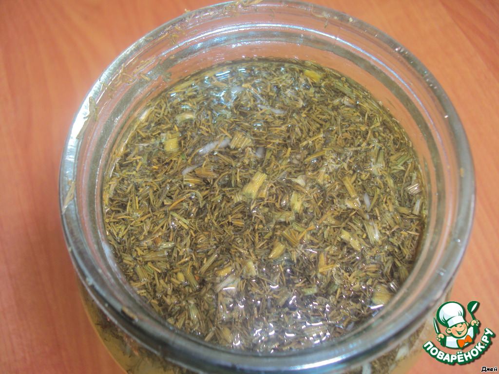 Заливаем всё тёплой водой и хорошенько перемешиваем, до полного растворения соли и бульонных кубиков. Если под рукой будет мясной бульон, то конечно же лучше использовать его, тогда кубики и вовсе не нужны. И зелень - по желанию, у меня был укропчик.