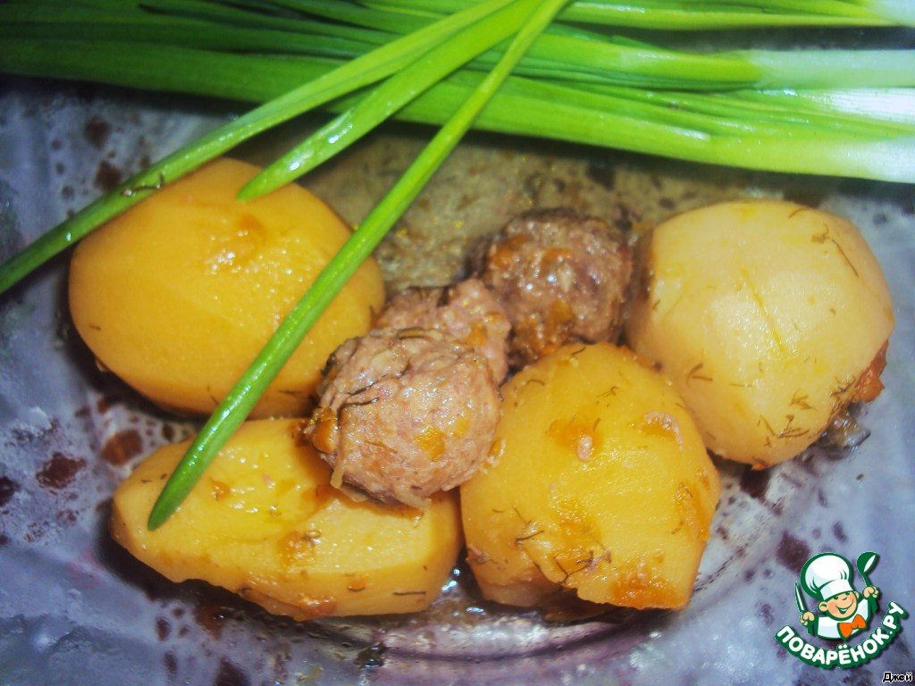 Затем, из фарша крутим не большие кругляши и отправляем к картошечке.