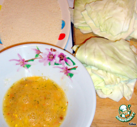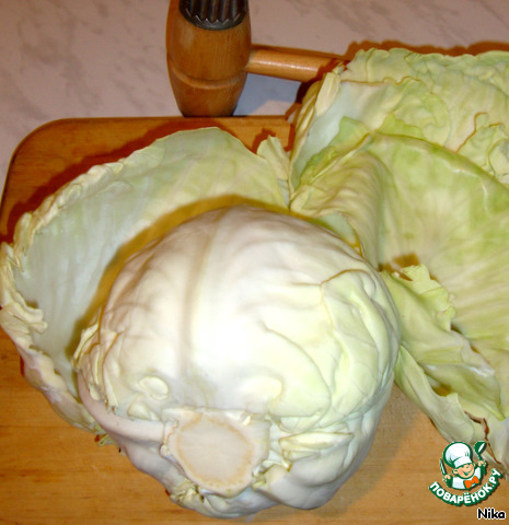 Капусту не отвариваю и в микроволновку не ставлю, чтобы листья были мягкими. Отрываю их, и неважно, если листья некрасиво порвутся. Твёрдые места с листьев убираю. При желании, можно отбить.