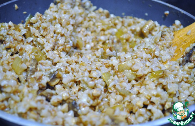 Гречку поставить варить в пропорции 1 к 2 почти до готовности. На вкус гречка должна быть слегка недоваренной.