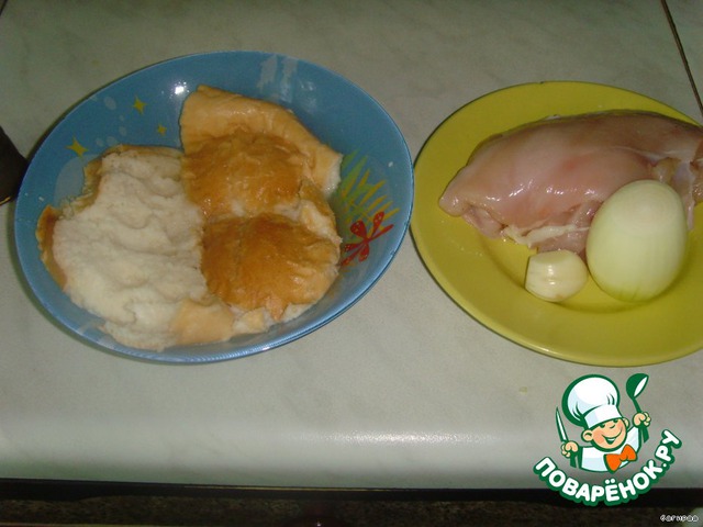 Куриное филе пропустить через мясорубку вместе с луковицей, чесноком, размоченной в воде (молоке)булкой.