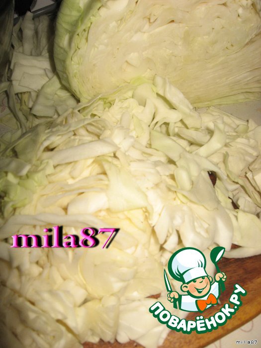Капусту шинкуем, не тонко, толстыми короткими ломтиками.
