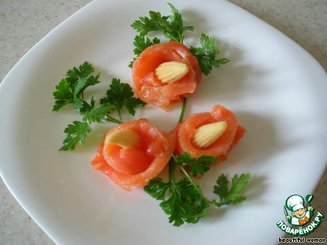 | Если у Вас имеется красная рыбка, а бутерброды с ней уже поднадоели, приготовьте для разнообразия такую закусочку. |