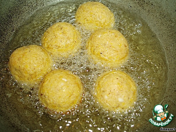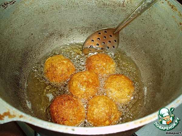 Разогреваем казан с достаточным количеством растительного масла и, когда масло хорошо прогрелось и напоминает агицын парАвоз, кидаем наши шарики,