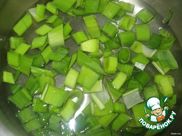 Лук нарезать, всыпать в кастрюлю с водой, немного проварить.