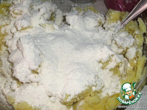 Отварить картофель в мундире, очистить, размять, положить 2 яйца, соль перец