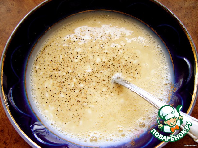 Яйца разболтать со сметаной (можно заменить молоком), добавить соль и перец по вкусу.