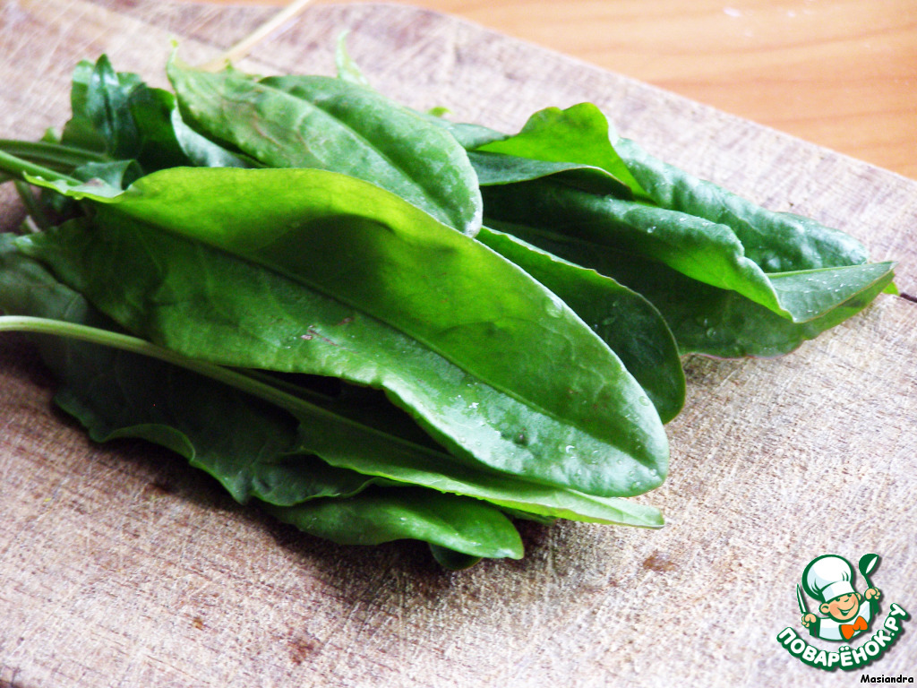 Поливаем манты готовым соусом, выкладываем нарезанный щавель.